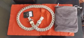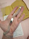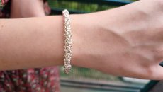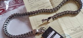 Повновісний браслет.На цій сторінці показаний масивний срібний браслет плетіння Бісмарк на руку із замком «Коробочка» з одним фіксатором, за бажанням можна встановити два фіксатори або інший замок, а також в цілому змінити інші параметри браслета: довжину, ширину, масу.